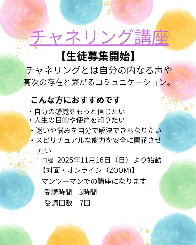 11月16日㈯より始動 チャネリング講座